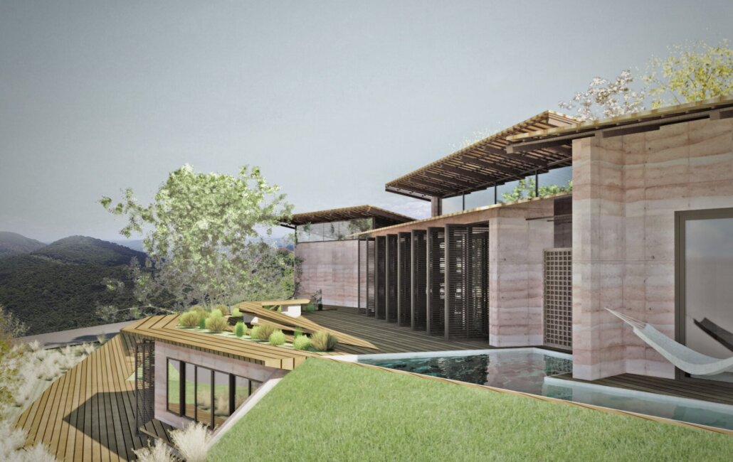 Com terreno localização no município de Moeda (MG), a residência considera um sistema de paredes estruturadas em taipa de pilão, aonde a terra é comprimida e moldada em fôrmas de madeira. A prática desta técnica já acontece desde 2600 anos a.c e, atualmente, tem se tornado uma possibilidade de aplicação da bioconstrução em projetos de arquitetura contemporânea.