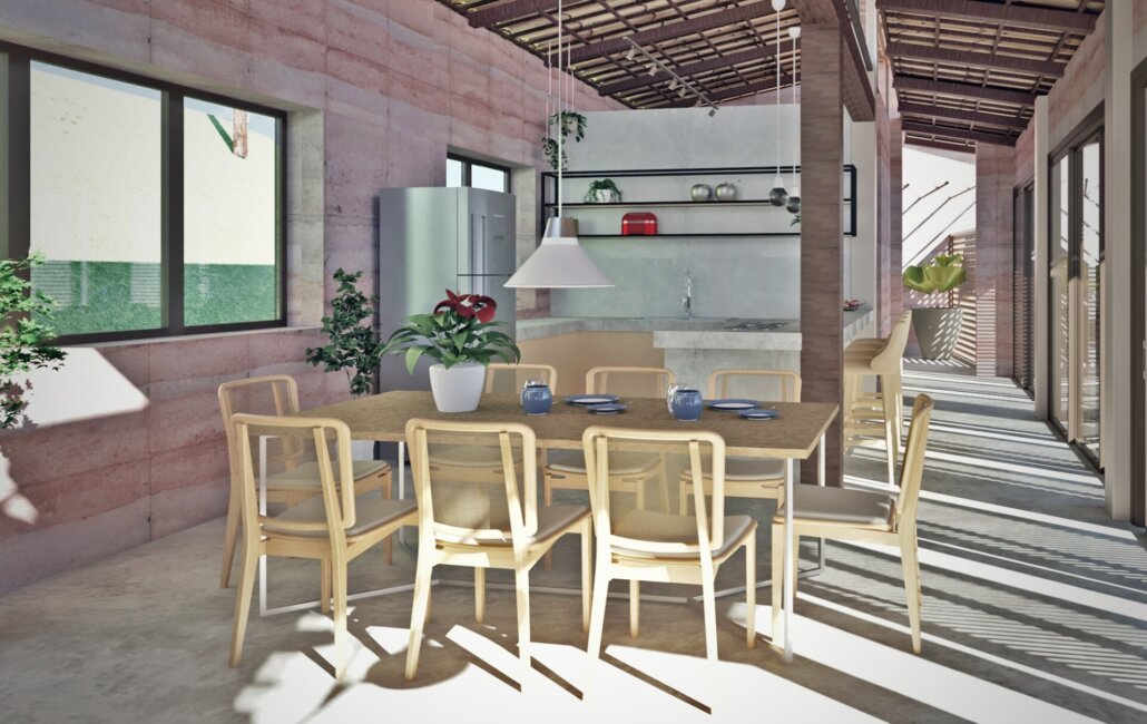 Classificados entre os 10 finalistas na categoria Profissional, o projeto Casa Moeda se destaca pela aplicação de estratégias bioclimáticas como a iluminação e ventilação naturais e ainda pelo método construtivo em terra.