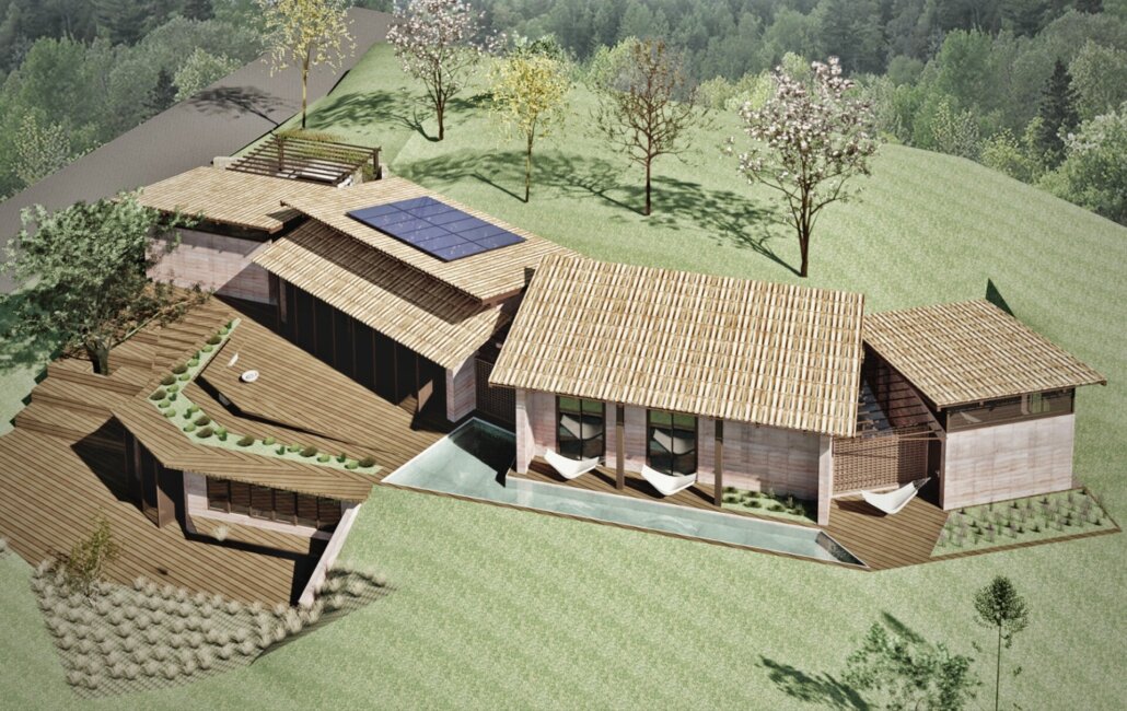 A residência contempla ainda sistemas e tecnologias para geração de energia por fontes renováveis e gerenciamento das águas por meio do aproveitamento máxima de água da chuva, tratamento de água cinza e negra com reuso em um sistema fechado.